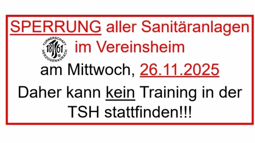 Am Mittwoch, 26.November kann kein Training im Vereinsheim stattfinden!
