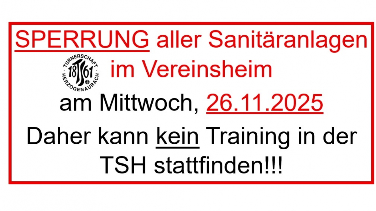 Am Mittwoch, 26.November kann kein Training im Vereinsheim stattfinden!