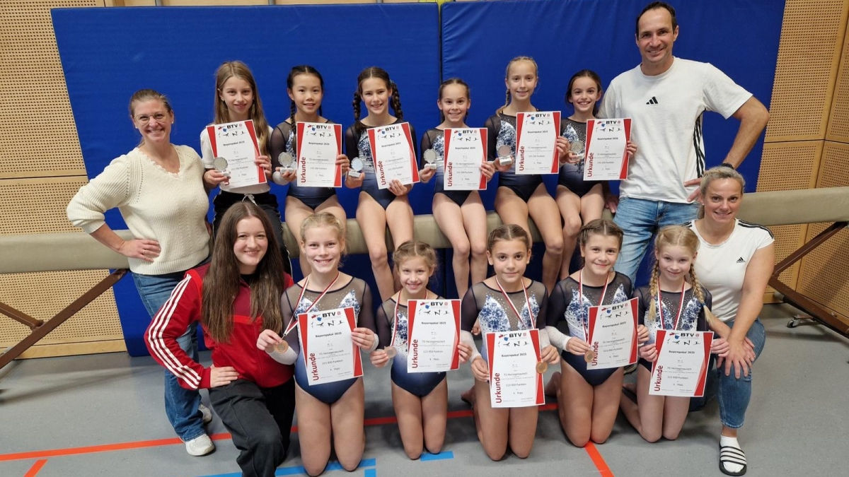 Die 1. Mannschaft mit Eva Erim, Ellen Holstein, Emily Liu, Mila Peuker, Nela Schilling und Enya Schmid (verletzt) überzeugte mit sauberen Übungen, Nervenstärke und großem Teamgeist. Mit einem hervorragenden zweiten Platz sicherte sich das Team verdient die Qualifikation für den Regionalentscheid. Besonders bemerkenswert war die geschlossene Mannschaftsleistung, mit der die Turnerinnen den verletzungsbedingten Ausfall von Enya Schmid souverän kompensierten.