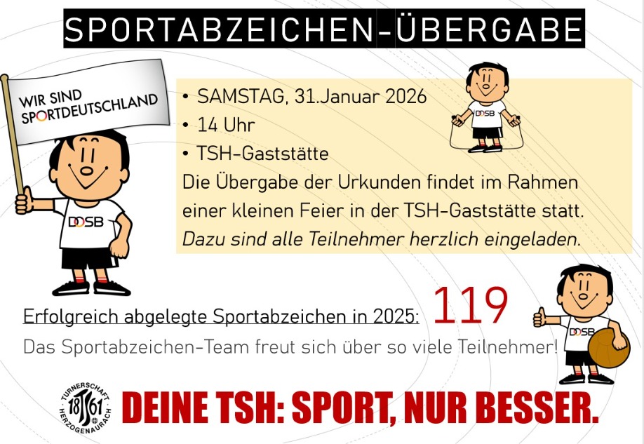 - Erwachsene Nicht-Mitglieder können wieder eine TSH-Kurzzeitmitgliedschaft für die Dauer von 4 Wochen zur Erlangung des Sportabtzeichens erwerben.