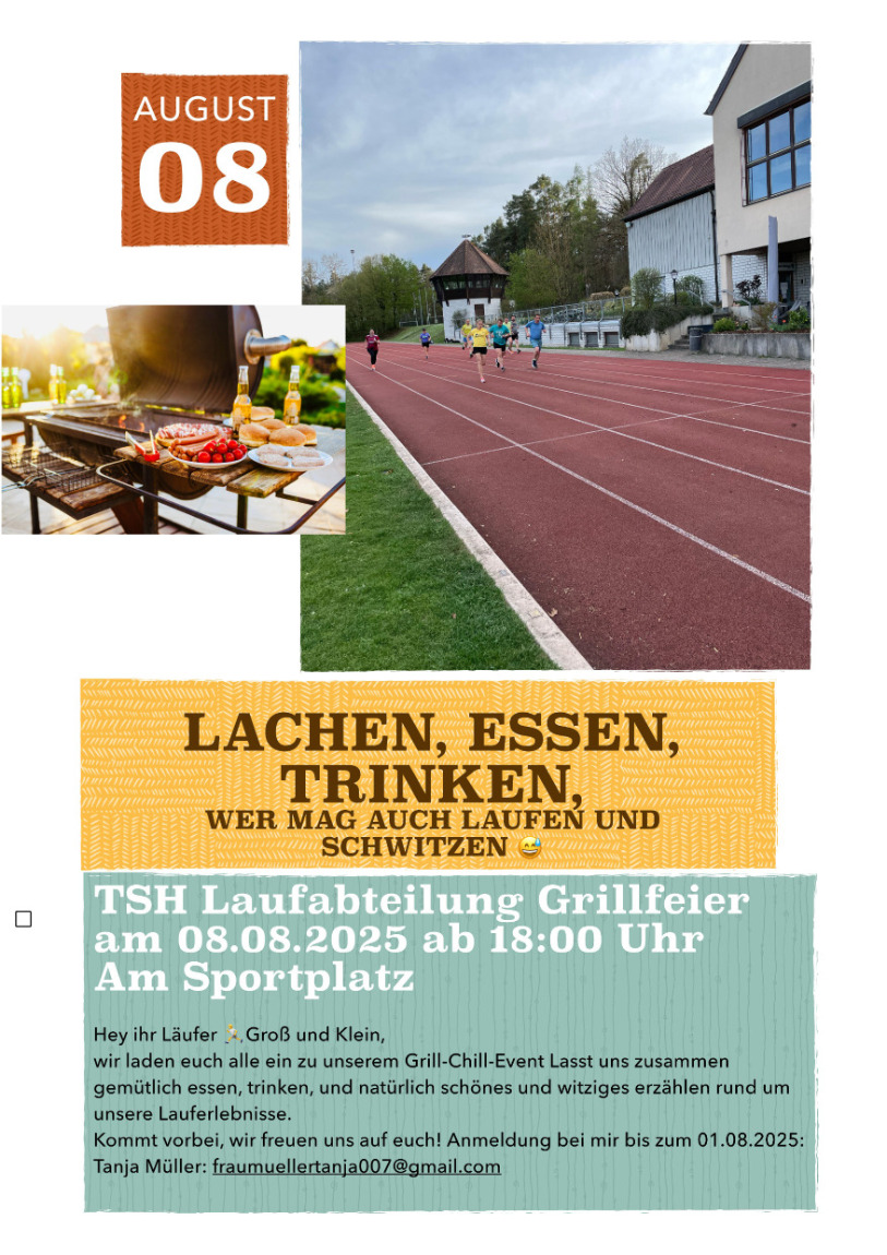 Laufsportabteilung Grillfeier 2025 - HERZLICHE EINLADUNG